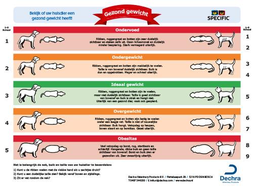 Gebruik de SPECIFIC® lichaamsconditie scorekaart voor katten.