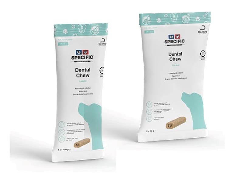 Dankzij de speciale flexibele textuur en de open structuur van de SPECIFIC kauwstaven, kunnen de tanden er diep in doordringen, waardoor de tanden schoon worden geschraapt.